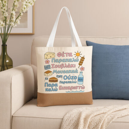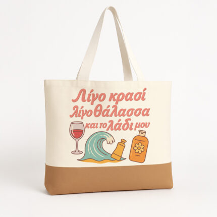 Πάνινη Τσάντα Ώμου – Λίγο Κρασί Λίγο Θάλασσα Και Το Λάδι Μου