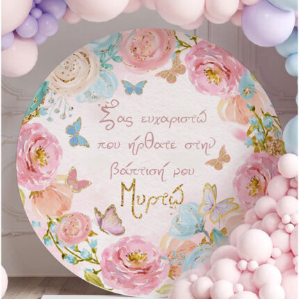 Στρογγυλή Αφίσα Βάπτισης Φλοράλ 1,30 x 1,30 m