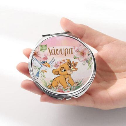 Καθρεφτάκι Λιονταράκι Ασημί Στρογγυλό