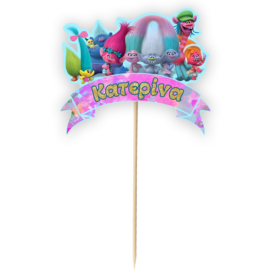 • Διακοσμητικό Topper Τούρτας με όνομα - Trolls 2,80 €