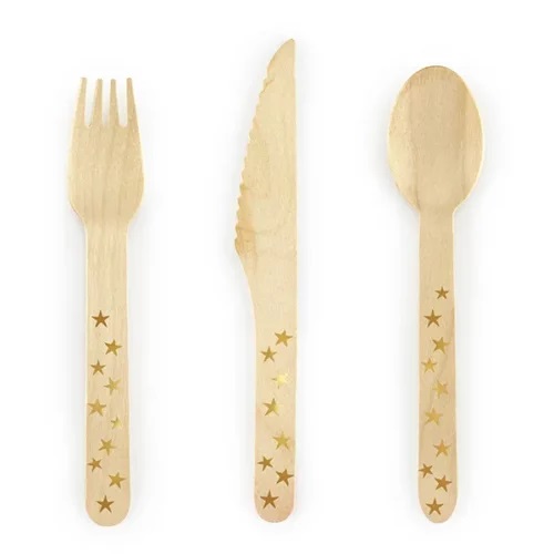 • Ξύλινα μαχαιροπίρουνα χρυσά αστέρια (18 τεμ) 2,50 €