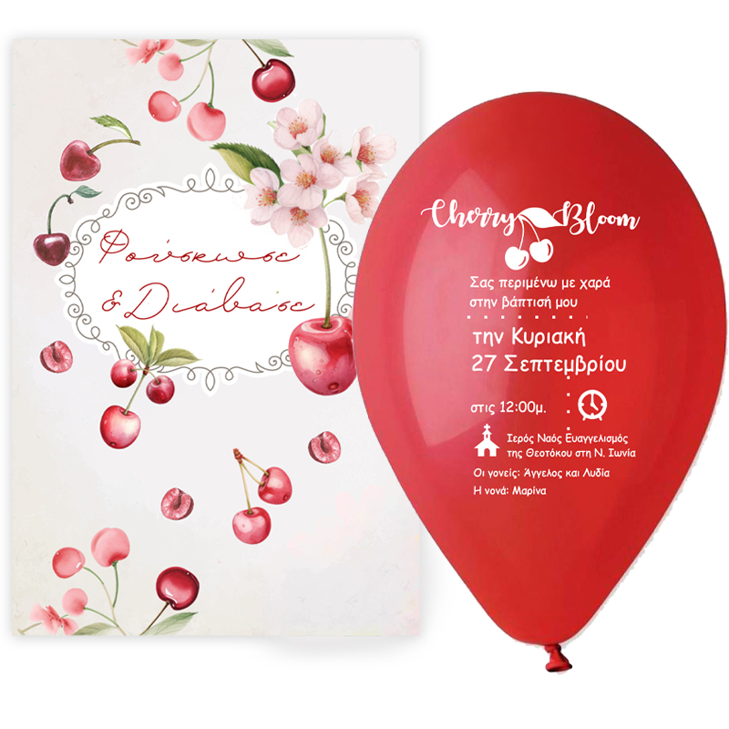 • Προσκλητήριο Βάπτισης μπαλόνι - Κεράσι 2,10 €