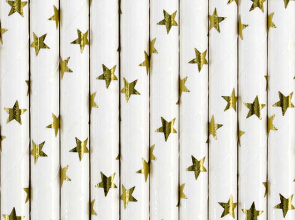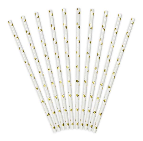 Καλαμάκια χάρτινα λευκά με χρυσά αστέρια (10 τεμ)