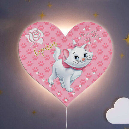 Ξύλινο Φωτιστικό καρδιά – Γατούλα Marie