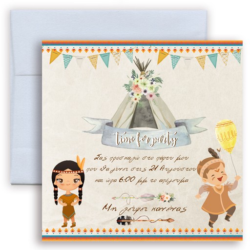 • Προσκλήσεις πάρτυ Ινδιάνοι με φάκελο 1,38 €