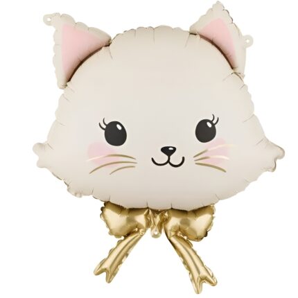 28” Μπαλόνι κρεμ Γατούλα με φιόγκο