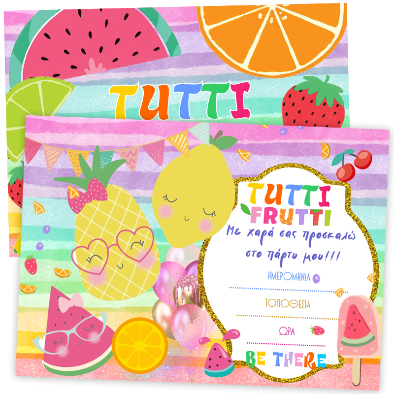 • Προσκλήσεις πάρτυ Tutti Frutti (8 τεμ) 6,50 €