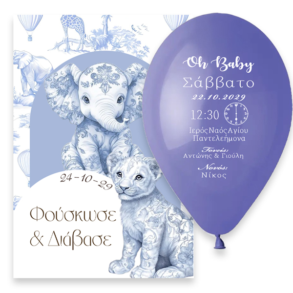 • Προσκλητήριο Βάπτισης Μπαλόνι - Blue Toile Ζώα Της Ζούγκλας 2,10 €