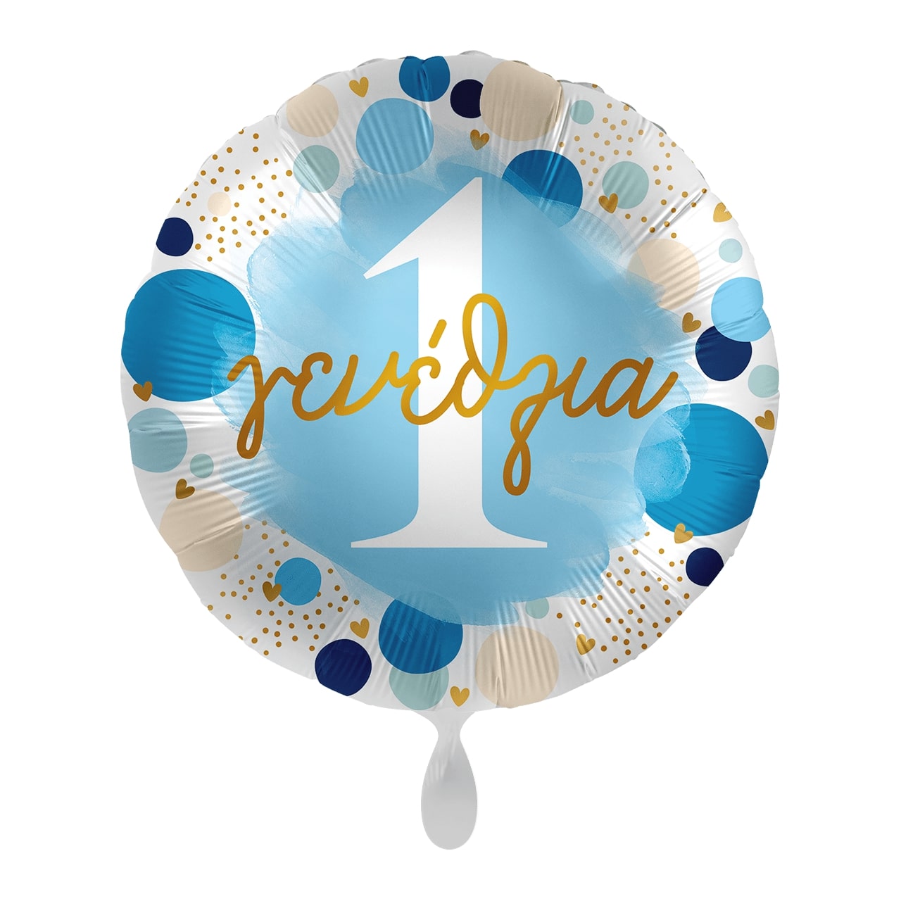 • Μπαλόνι Φοιλ 17 Χαρούμενα 1 Γενέθλια Πουά Μπλε και Χρυσό / 43 εκ 4,40 €