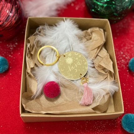 Χριστουγεννιάτικο Γούρι Mπρελόκ για Νονά – “Χρυσό Plexi Με Χάραξη”