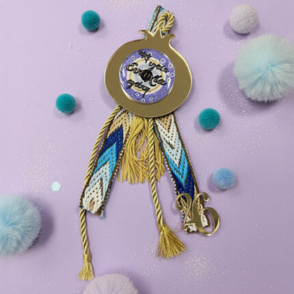 Χριστουγεννιάτικο Γούρι Με Ευχές – “Χρυσό Plexi Ρόδι Με 3D Ξύλινο Ματάκι”