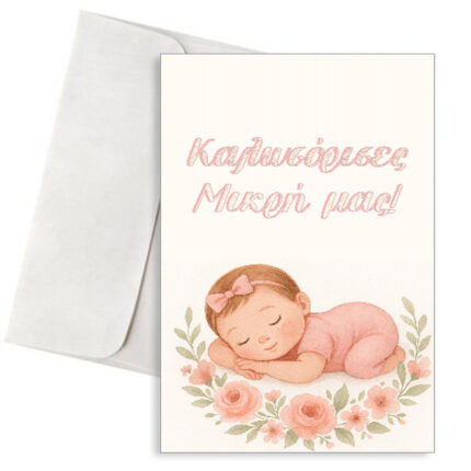 Ευχετήρια Κάρτα Γέννησης Κοριτσιού – “Καλωσόρισες, Μικρή μας! “