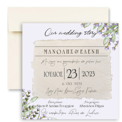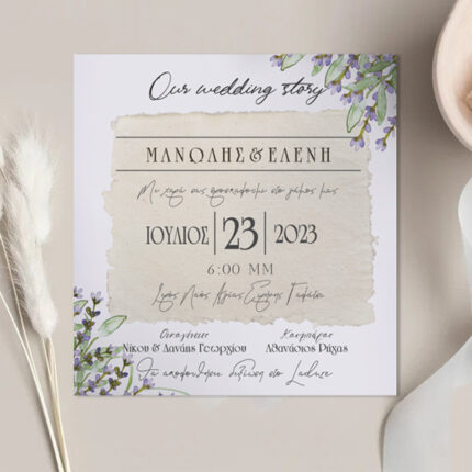 Προσκλητήριο Γάμου μονόκαρτο – Λεβάντα