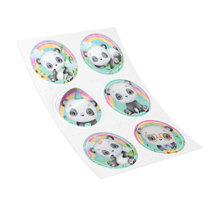Στρογγυλά αυτοκόλλητα με χαριτωμένο αρκουδάκι Panda, για να διακοσμήσετε το πάρτυ ή τη βάπτιση.