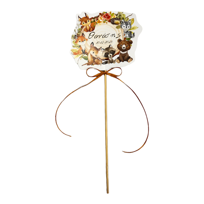 Στολίστε το candy bar ή το τραπέζι με στικάκια σε θέμα Ζώα του Δάσους με εκτυπωμένο το μήνυμα που θέλετε!