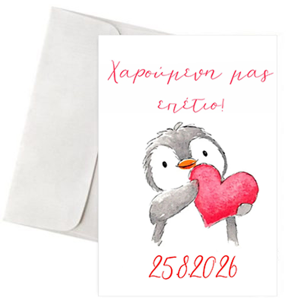 Κάρτα Αγάπης – “Πιγκουινάκι Καρδιά”