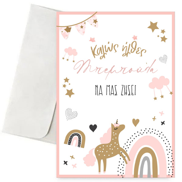 Κάρτα γενεθλίων με σχέδιο μαγικό Μονόκερο, για να ευχηθείτε στα αγαπημένα σας άτομα Χρόνια Πολλά !