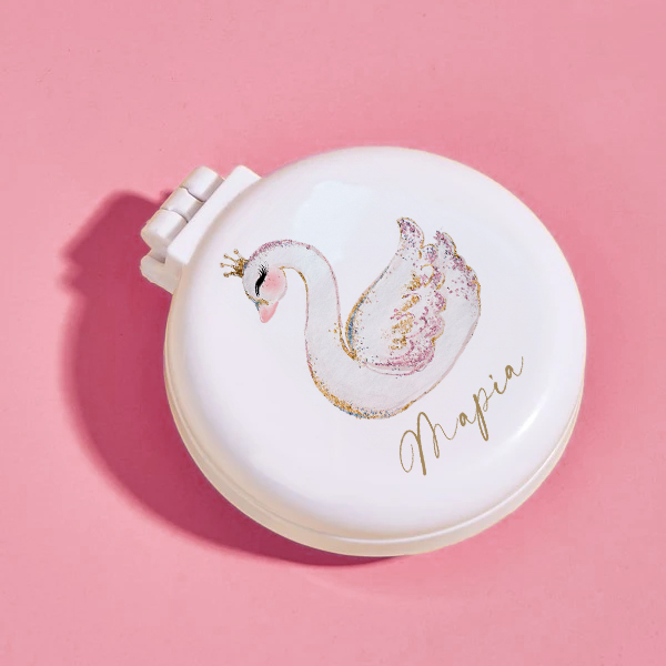 Προσωποποιημένο καθρεφτάκι με χτενάκι και θέμα Κύκνος. Το απόλυτο δωράκι για να χαρίσεις στην κάθε καλεσμένη του πάρτυ, με το όνομα της!