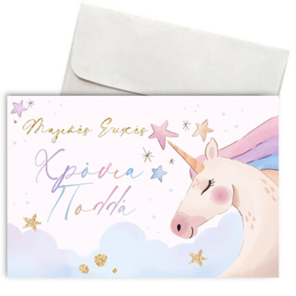 Καπελάκι χάρτινο χειροποίητο για παιδικό πάρτυ γενεθλίων με τoν Μονόκερο και το μήνυμα που θέλετε!