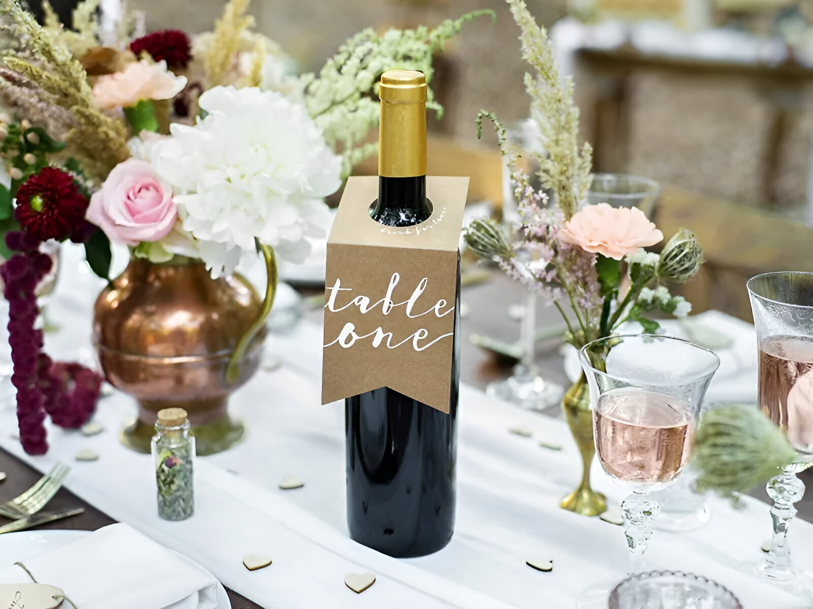 Καρτελάκια για μπουκάλια για μια πρωτότυπη αρίθμηση τραπεζιών στη δεξίωση του γάμου, της βάπτισης, της εκδήλωσης! Τοποθέτησε τα στα μπουκάλια κρασιού και εντυπωσίασε τους καλεσμένους!
