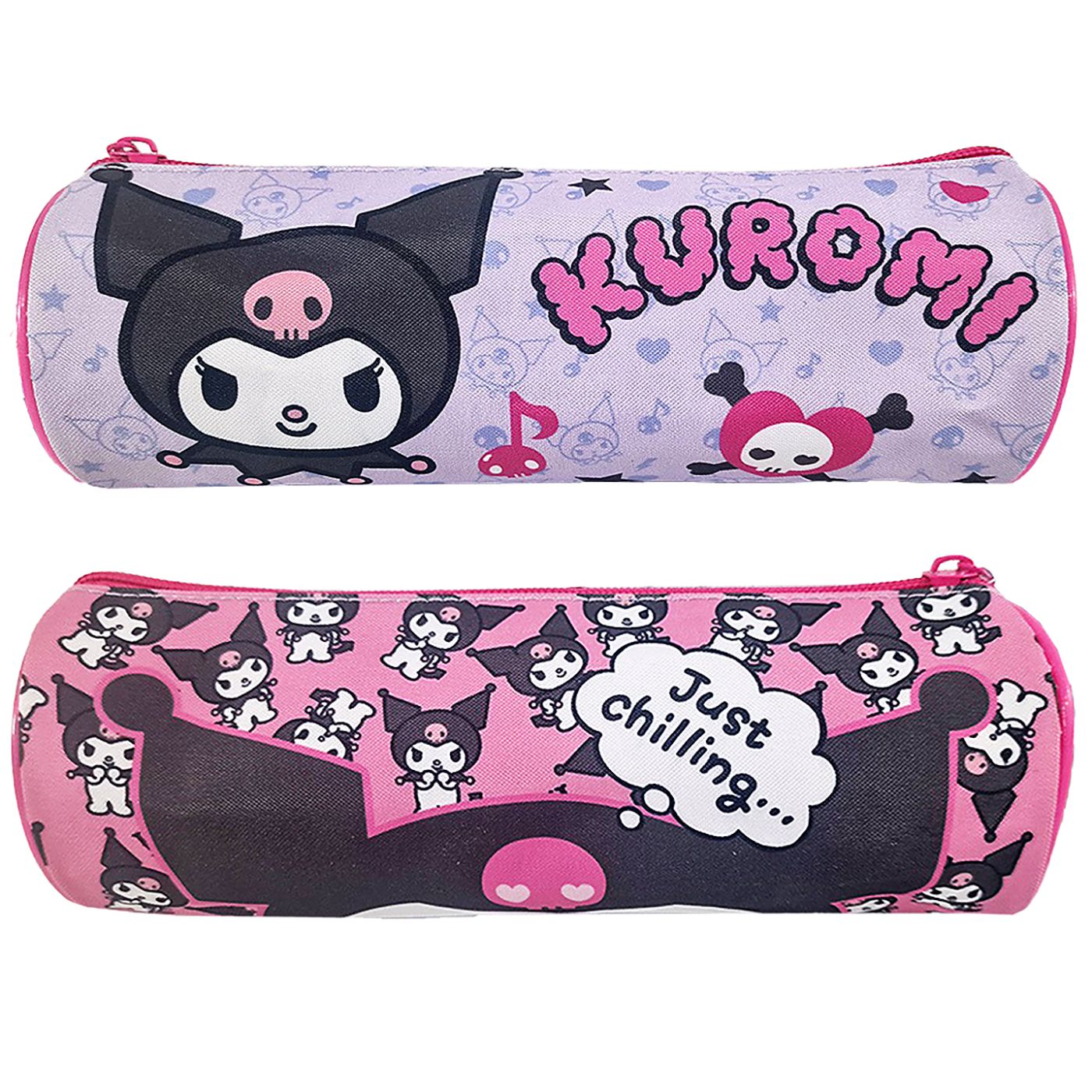 Κασετίνα σε σχήμα βαρελάκι με την αγαπημένη Kuromi, για να οργανώσεις τα σχολικά σου είδη.