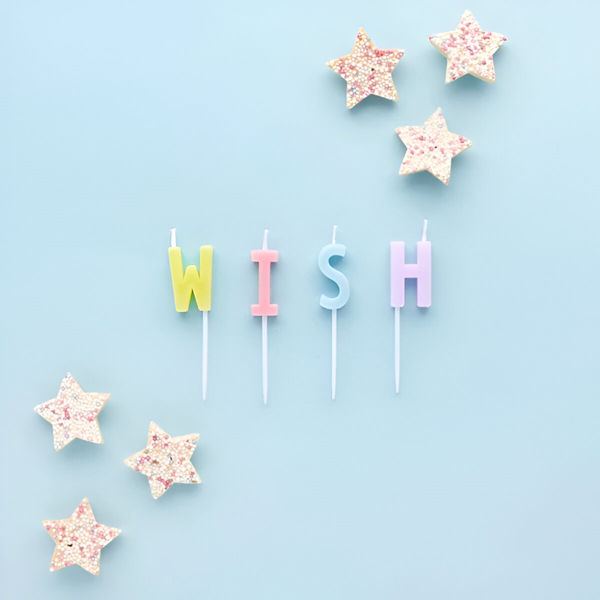 Κάνε μια ευχή και φύσα δυνατά! Χαριτωμένα κεράκια σε παστέλ χρώματα για να στολίσεις την τούρτα γενεθλίων με μήνυμα ‘wish’!