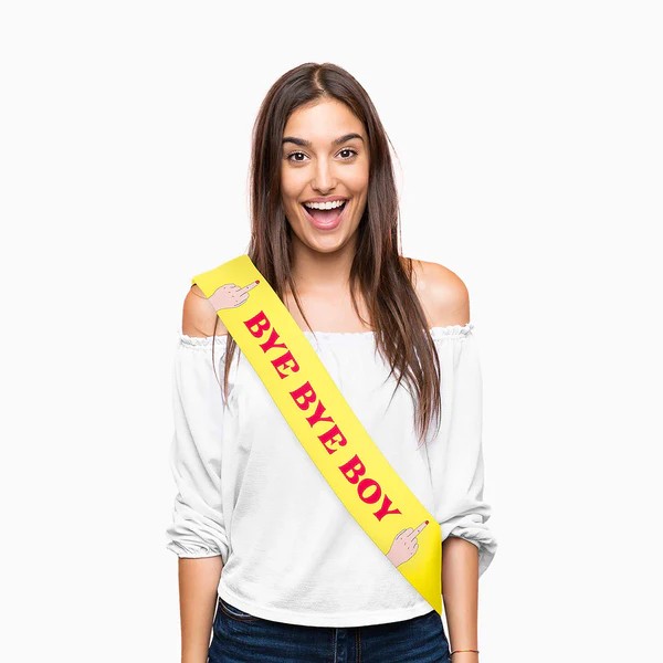 Κορδέλα “Bye Bye Boy”, γιατί κάποιοι χωρισμοί αξίζει να γιορτάζονται! Ιδανική επιλογή για πάρτυ διαζυγίου ή για ένα δυναμικό statement σε μια βραδιά έξω με τις φίλες σου!