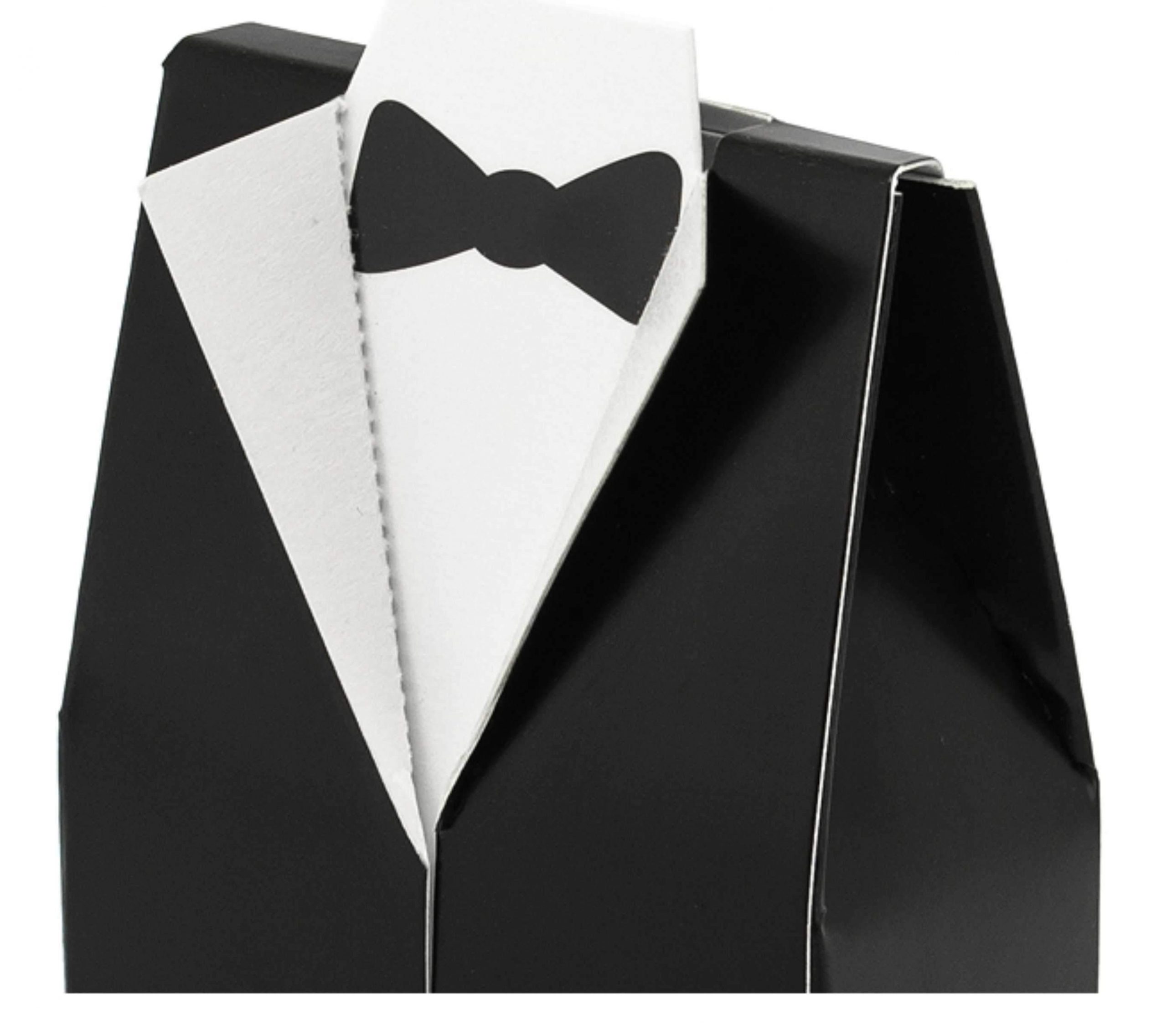 “Μαύρα χάρτινα κουτάκια μπομπονιέρας σε σχήμα γαμπριάτικο κουστούμι!