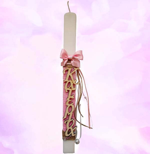 - Λαμπάδα με εκτύπωση υψηλής ποιότητας και διακόσμηση με ροζ κορδέλες