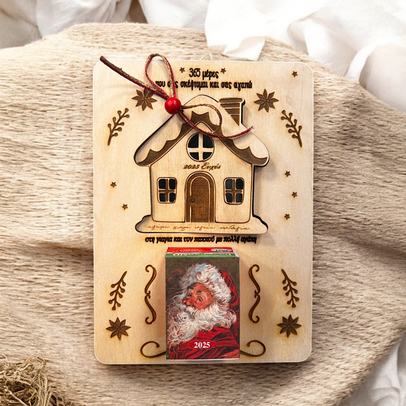 - Διακοσμημένη με ξύλινες φιγούρες 11εκ, 5εκ και με κορδέλες σε ταιριαστές αποχρώσεις