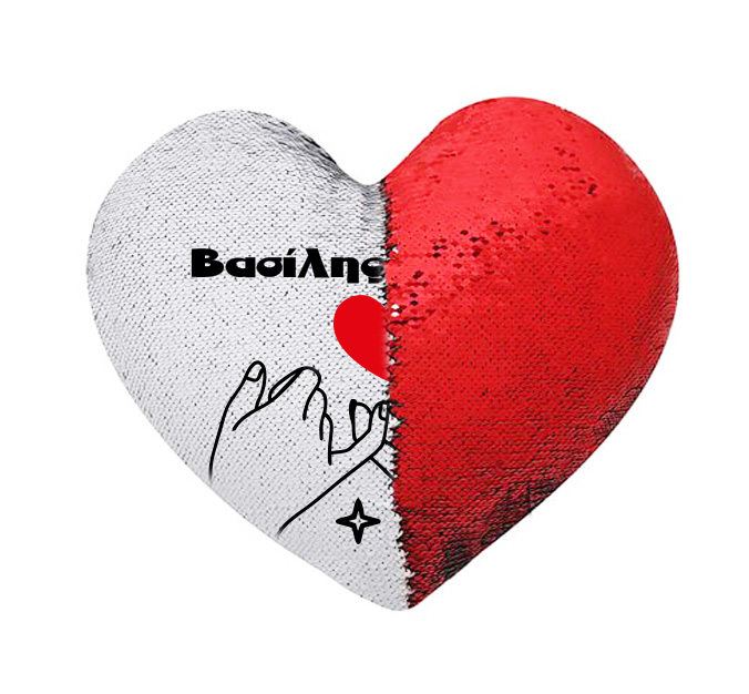 Μαξιλάρι “Take my Hand” με τα ονόματά σας σε σχήμα καρδιάς με πούλιες διπλής όψης, για να χαρίσεις στο άλλο σου μισό και να δείξεις την αγάπη σου!