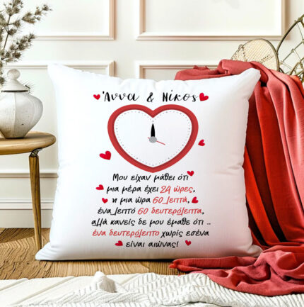 Μαξιλάρι σε σχήμα καρδιάς με ρομαντικό μήνυμα, για να χαρίσεις στο άλλο σου μισό ως δώρο για τον Άγιο Βαλεντίνο ή την επέτειό σας και να νιώσει υπέροχα!