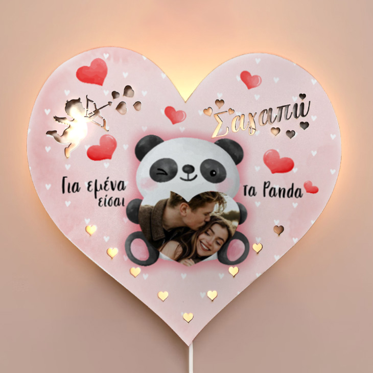 Ξύλινο Φωτιστικό καρδιά – Είσαι τα Panda