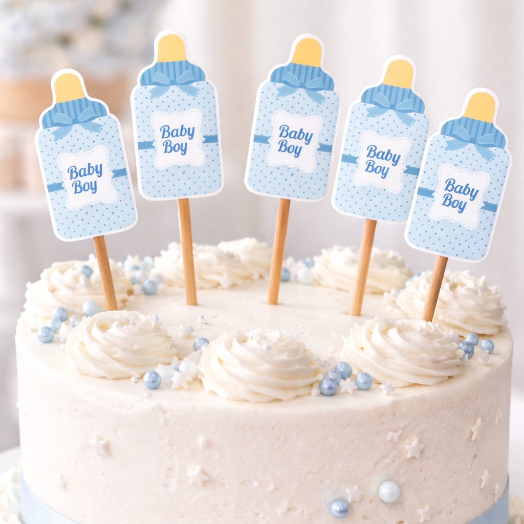 Σετ topper cupcake “Baby Boy” σε σχήμα μπιμπερό είναι η ιδανική προσθήκη για κάθε Baby Shower, Gender Reveal ή βάπτιση αγοριού.