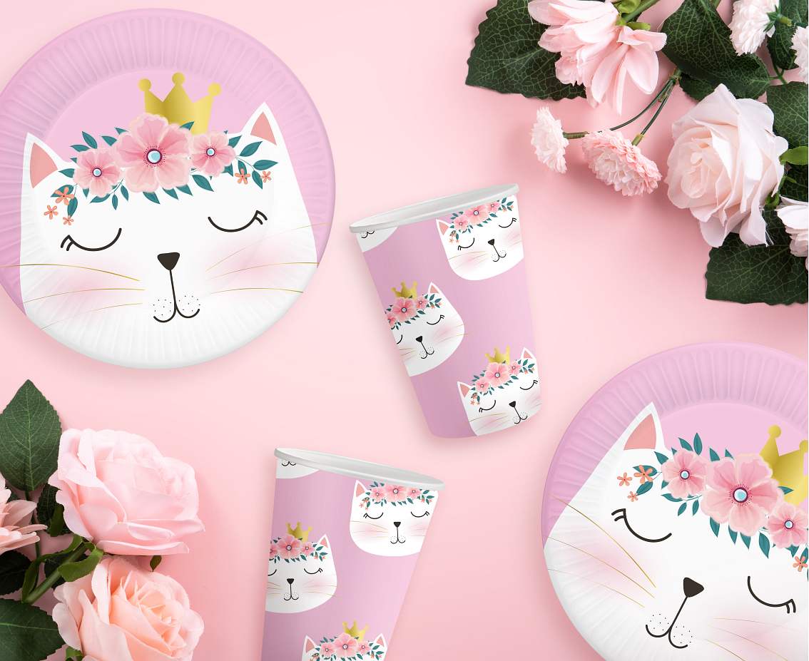 Πιάτα γλυκού με σχέδιο γατούλα με λουλούδια & κορώνα!