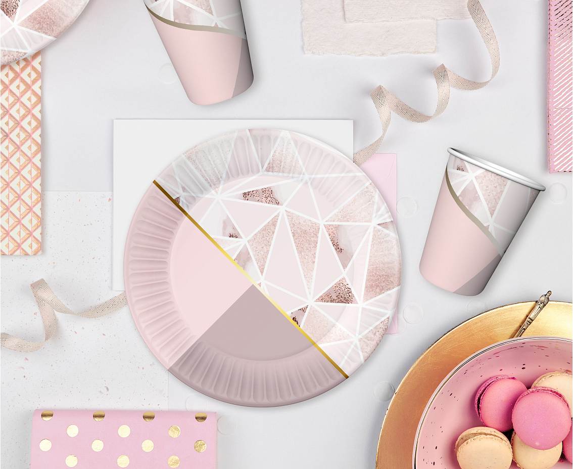 Elegant πιάτα γλυκού με εντυπωσιακό σχέδιο σε χρώματα ροζ, λευκό & χρυσό. Ιδανικά για να σερβιριστούν οι καλεσμένοι σας!