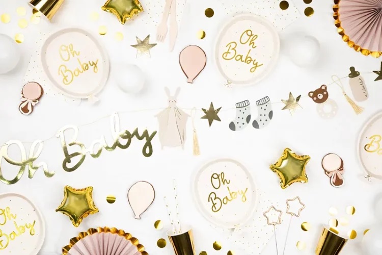 Ιδιαίτερα πιάτα φαγητού σε σχήμα μπαλόνι, με χρυσά γράμματα Oh Baby! Iδανικά για το Baby Shower, τα πρώτα γενέθλια ή το μπουφέ βάπτισης του μωρού σας!
