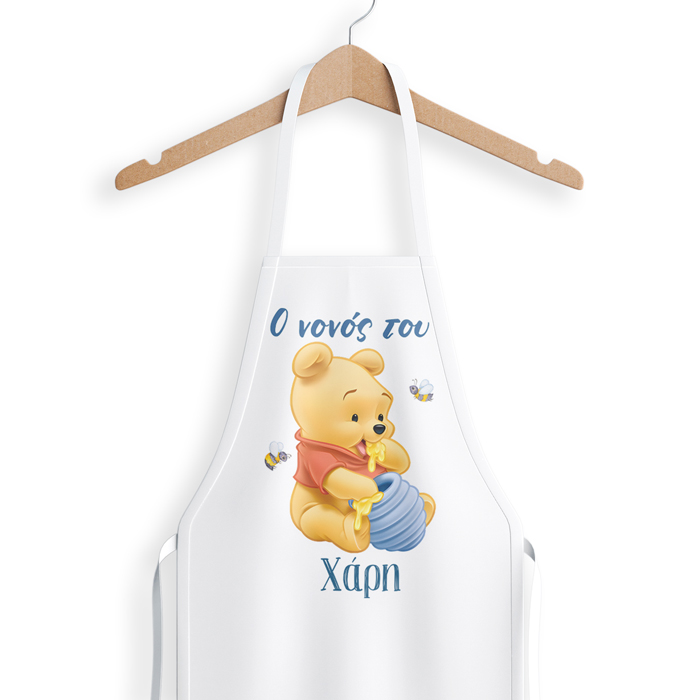 Προσωποποιημένη ποδιά με θέμα baby Winnie σε όμορφες αποχρώσεις για να την φορά ο νονός ή η νονά του μωρού σας στη βάπτιση του!