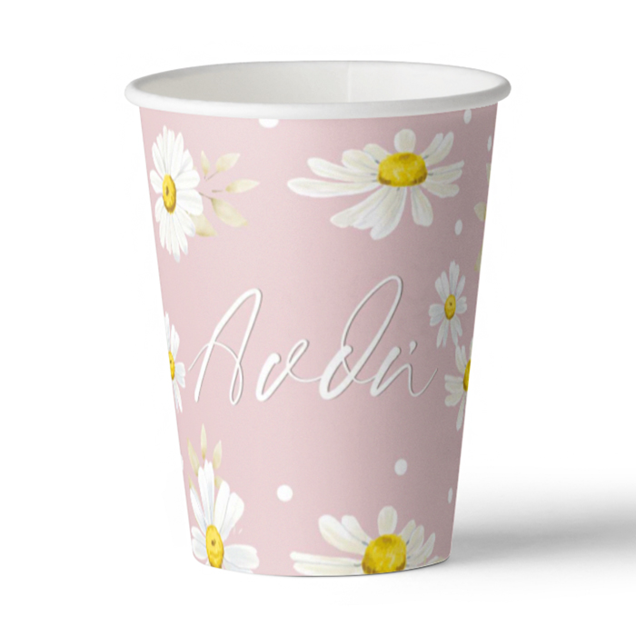 Ποτηράκια με το όνομα του μικρού σας και θέμα Μαργαρίτα, για να κεράσετε τους καλεσμένους σας στο τραπέζι του πάρτυ ή της βάπτισης!