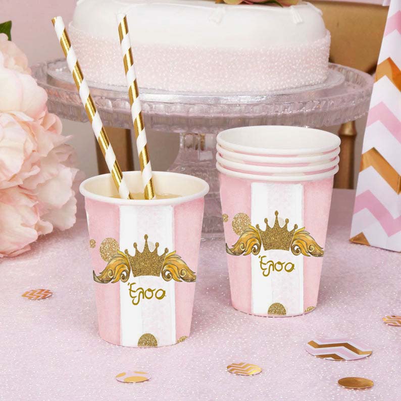Ποτηράκια με το όνομα της μικρής σας και θέμα την Κορώνα, για να κεράσετε τους καλεσμένους σας στο τραπέζι του πάρτυ ή της βάπτισης!