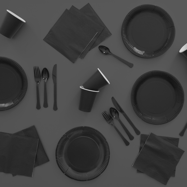Ποτήρια χάρτινα για το τραπέζι του πάρτυ ή της εκδήλωσης σε χρώμα μαύρο.