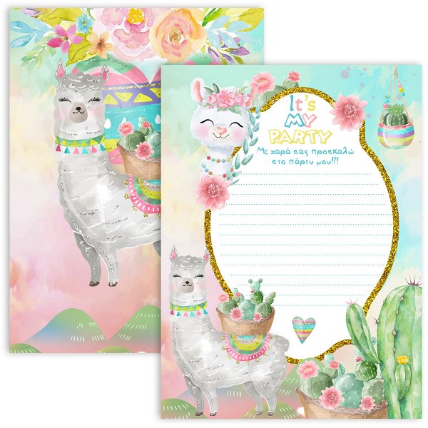 Προσκλήσεις πάρτυ Λάμα και Κάκτος (8 τεμ)