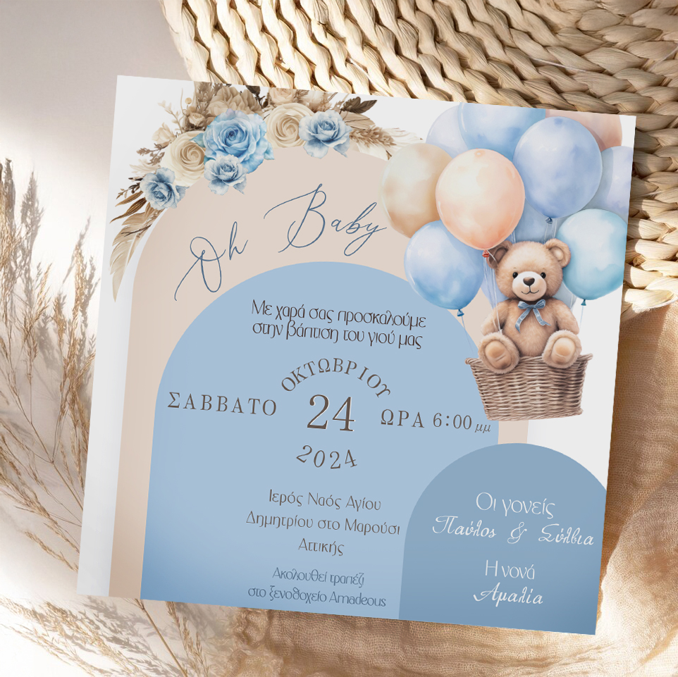 Προσκλητήριο Βάπτισης – Αρκουδάκι Boho