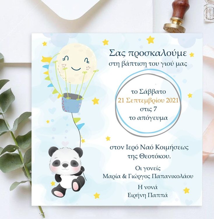 Προσκαλέστε τα αγαπημένα σας άτομα στη βάπτιση του μωρού σας με προσκλητήριο σε θέμα αρκουδάκι Panda!