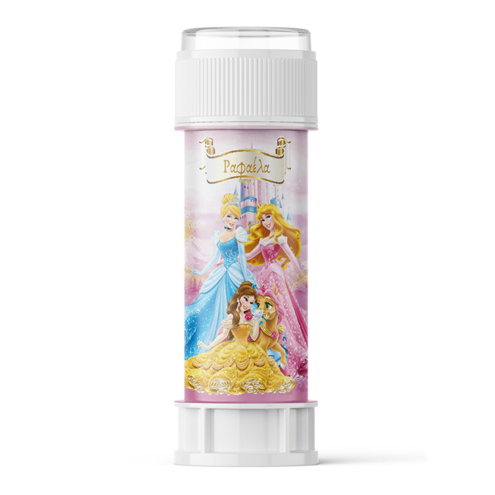 Προσωποποιημένες σαπουνόφουσκες με χάρτινο περιτύλιγμα Πριγκίπισσες, για να χαρίσετε ως δωράκι στα παιδάκια του πάρτυ.