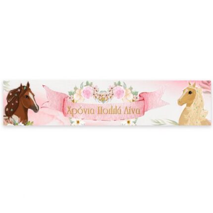 Διακοσμητικά σημαιάκια με θέμα Άλογο και το όνομα του παιδιού για να στολίσετε μοναδικά τον μπουφέ του πάρτι!