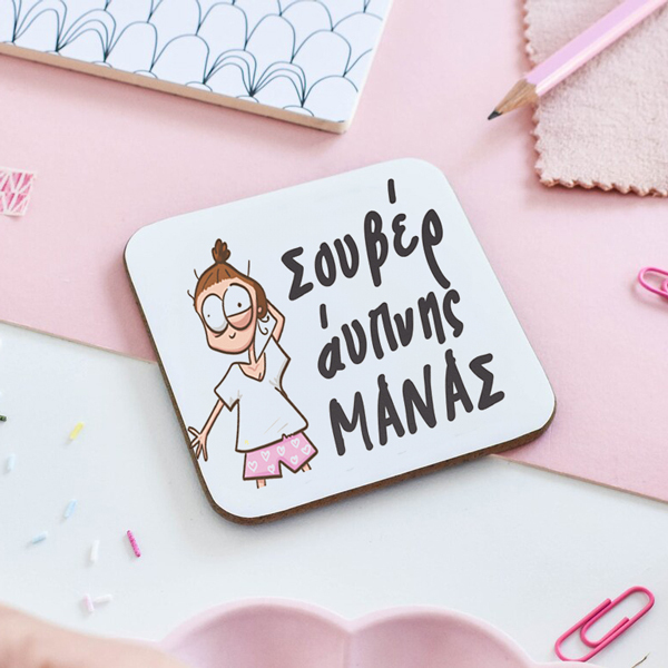 Σουβέρ από φελλό με σχέδιο “Άυπνη Μάνα”. Κάνε το δώρο στην μαμά σου και δείξε της πόσο πολύ την εκτιμάς, με τον πιο χιουμοριστικό τρόπο!
