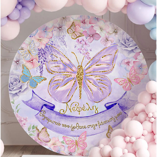 Στρογγυλή Αφίσα Βάπτισης Πεταλούδα
