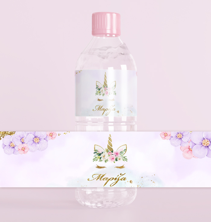 Στο πάρτι σας δεν θα υπάρχει απλό νεράκι.. Αλλά μπουκαλάκια με θέμα Μονόκερος και το όνομα του παιδιού σας!