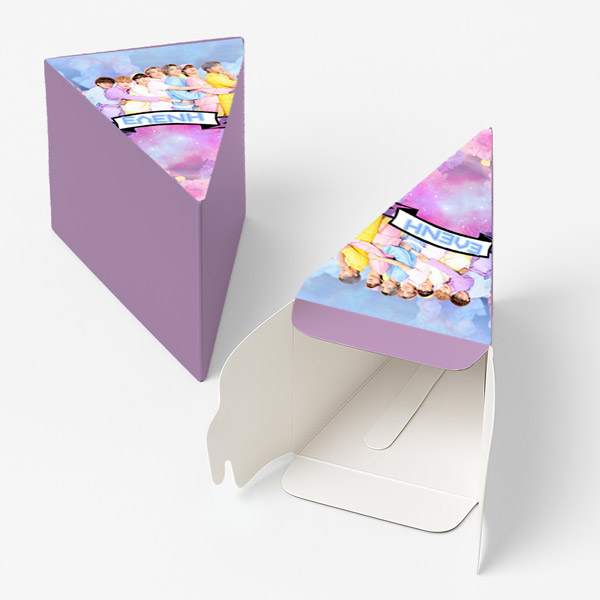 Χάρτινη τούρτα με θέμα BTS, με το όνομα του παιδιού & εντυπωσιακό design. Η χάρτινη τούρτα αποτελείται από 12 ξεχωριστά κομμάτια, τα οποία όταν συναρμολογηθούν σχηματίζουν έναν ολοκληρωμένο κύκλο – μια εντυπωσιακή παρουσίαση για κάθε είδους εκδήλωση. Κάθε κομμάτι είναι σχεδιασμένο σαν φέτα τούρτας και λειτουργεί ταυτόχρονα ως κουτάκι, ιδανικό για γλυκά ή μικρά δωράκια.